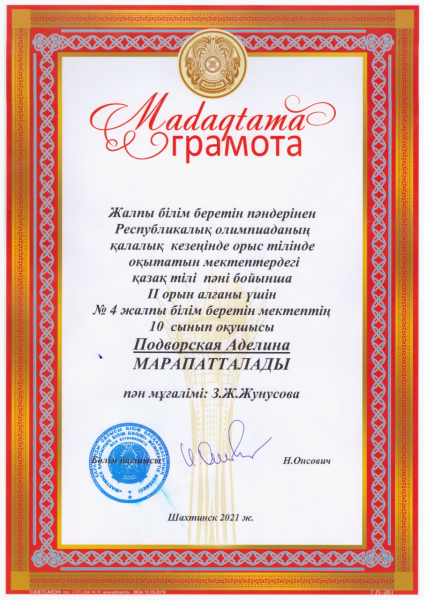 Организации> КГУ "Общеобразовательная школа №4" отдела образования города Шахтинска управления образования Карагандинской области