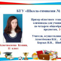 Ахметвалеева Ксения, ученица 11 "А" класса школы- гимназии № 17 - призер областного этапа Президентской олимпиады по предметам естественно- математического направления- 3 место
