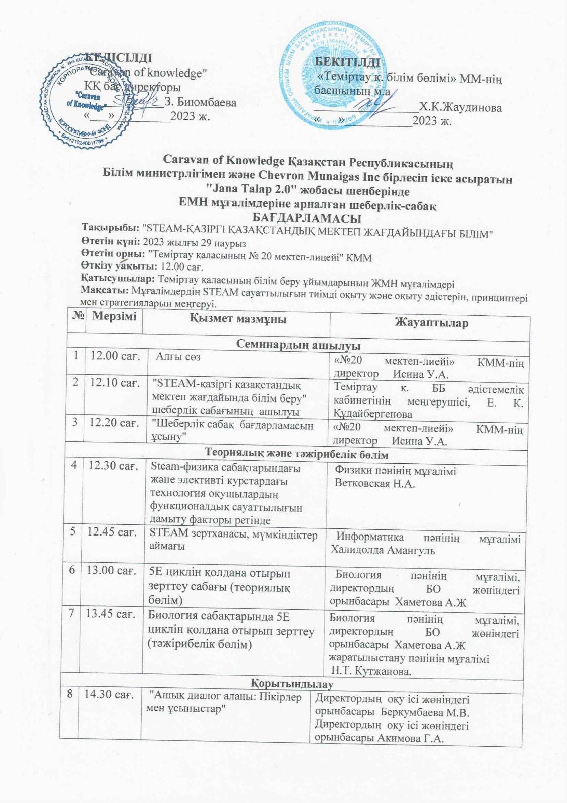 29.03.2023 в КГУ "Школа-лицей №20" прошел Мастер-класс рамках проекта «Jana Talap 2.0» реализуемого Сaravan of Knowledge