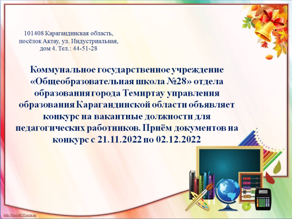 Конкурс на занятие вакантной должности учителя английского языка
