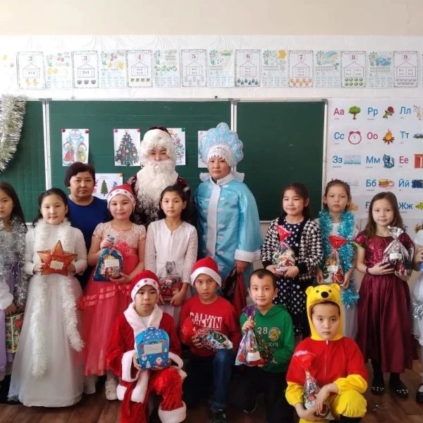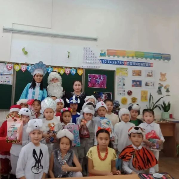 Учащиеся КГУ " ОШ І 28" ОО г.Темиртау получили новогодние подарки от партии "Аманат".