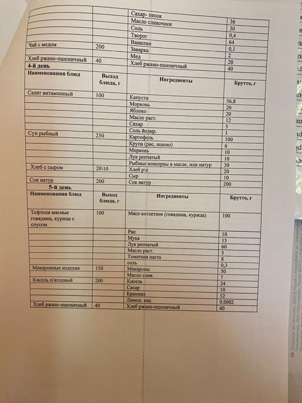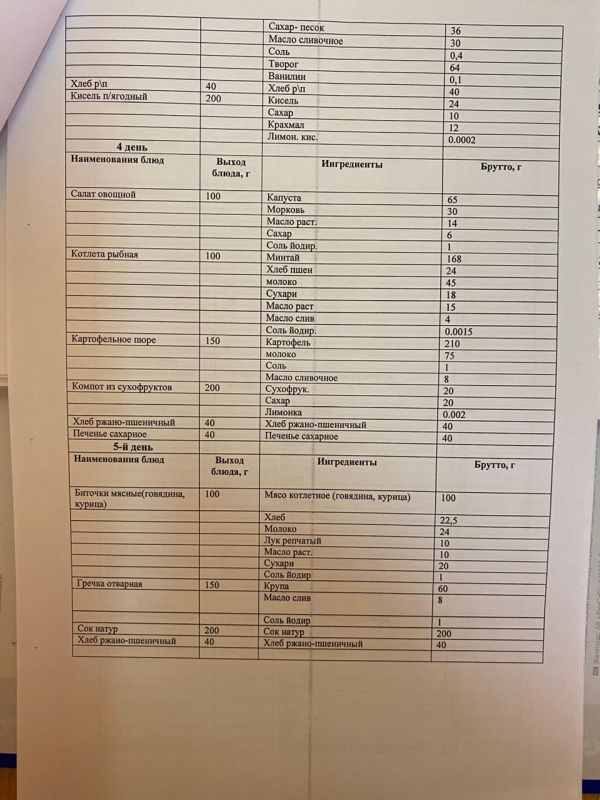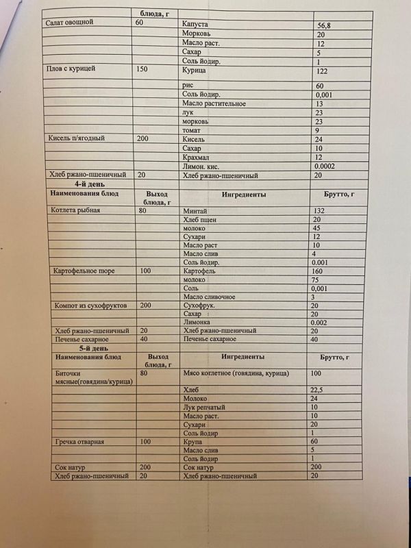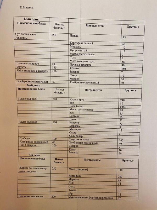 Преспективное одноразовое двухнедельное меню