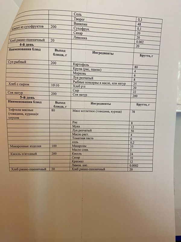 Меню на 28 сентября