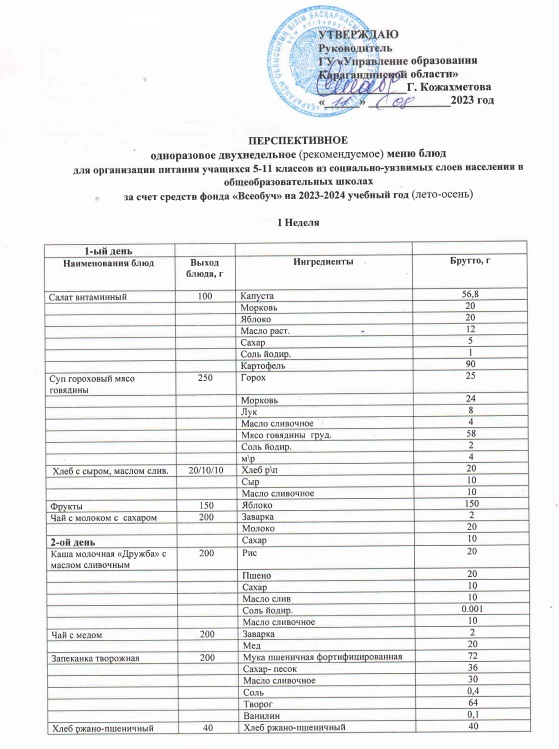 Перспективное меню 5-11 класс (лето-осень) 2023-2024