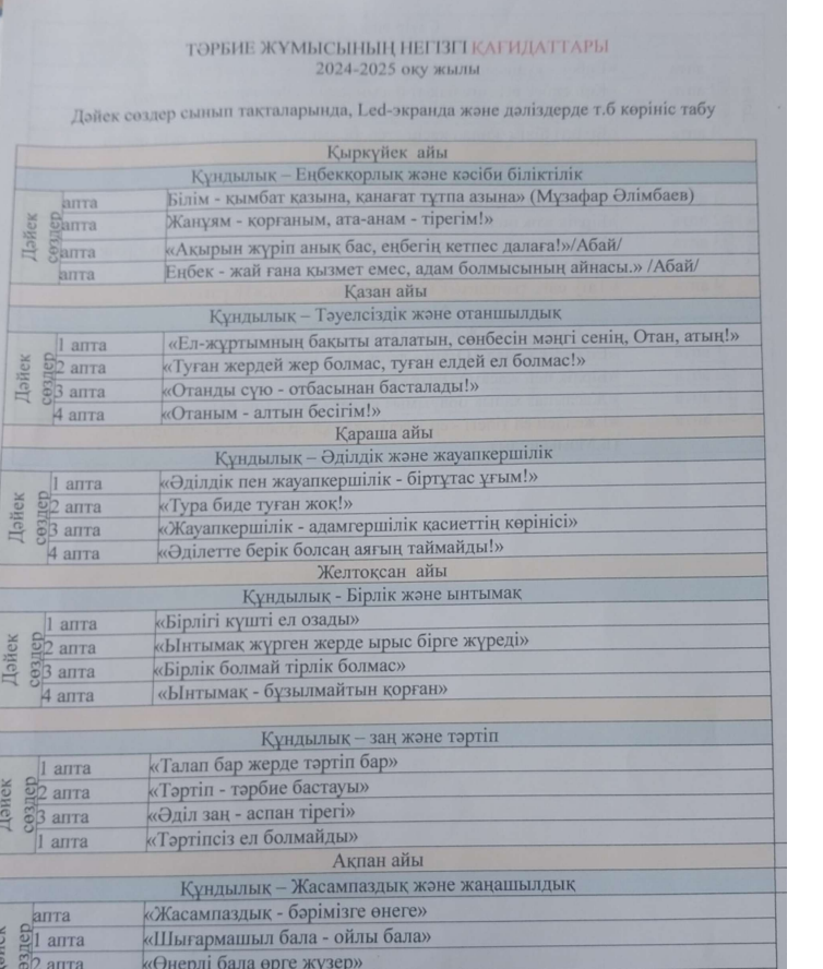 БІРТҰТАС ТӘРБИЕ БАҒДАРЛАМАСЫ 2024-2025ЖЖ