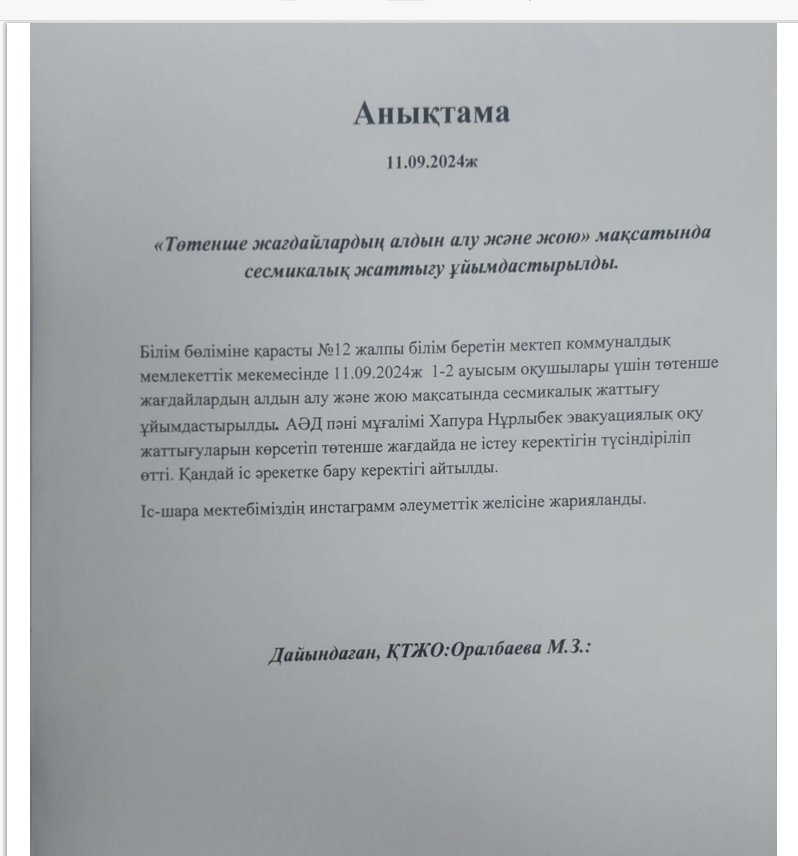 Эвакуацияның өткізілгені туралы анықтама