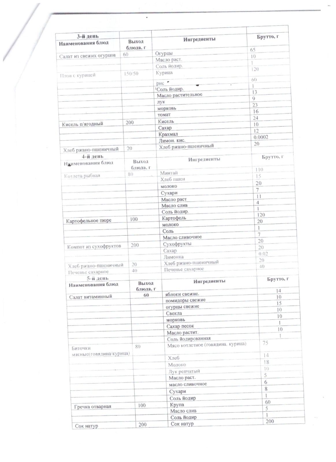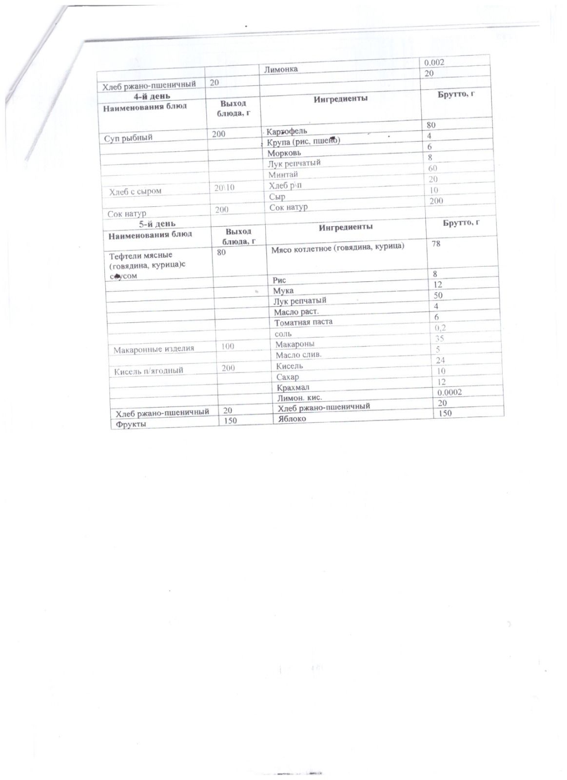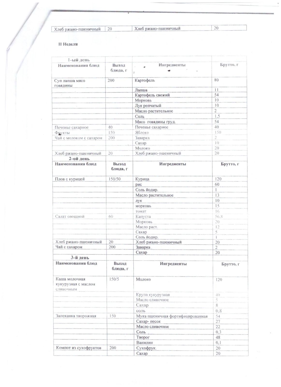 Меню бастауыш сыныптарына