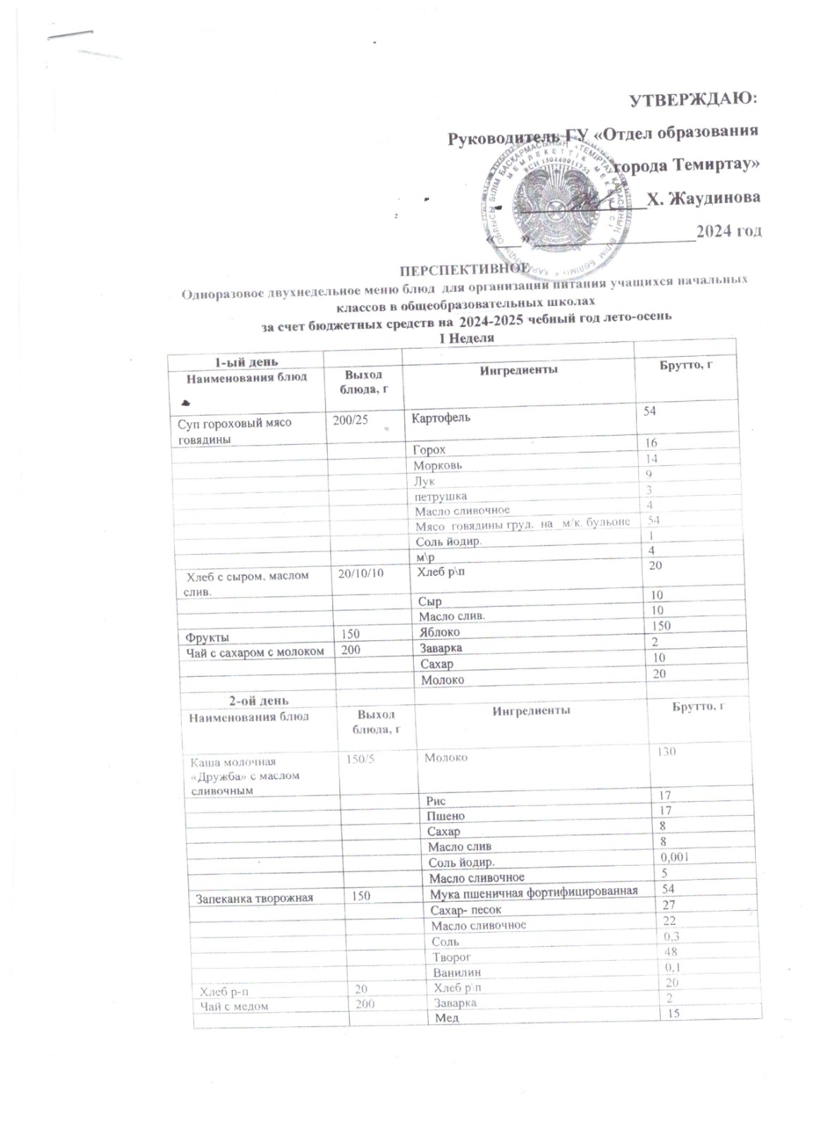 24-25 оқу жыдында оқушыларды тамақтандыру ұйымдастыру жоспары