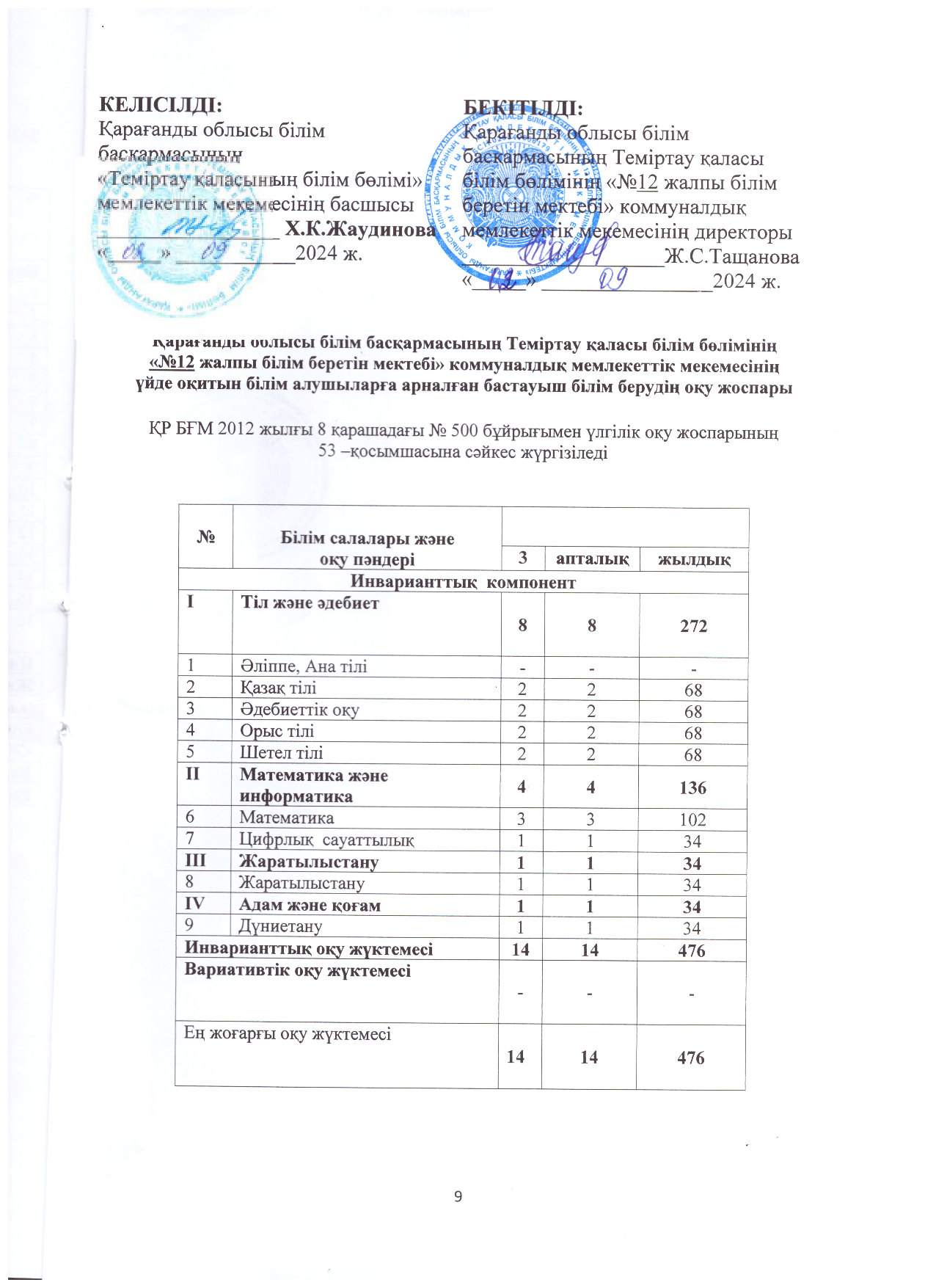 Сабақ кестесі 2024-2025ож
