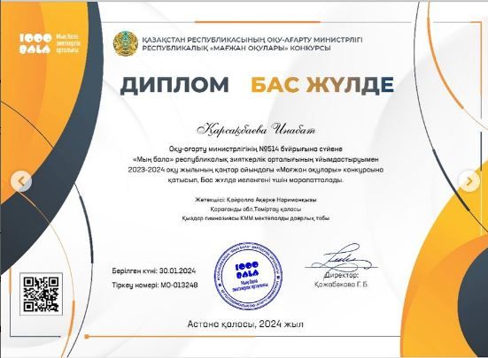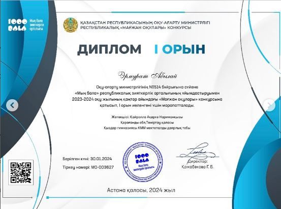4 "Ә" сынып оқушысы Бауржан Каусарды құттықтаймыз! Талабыңа нұр жаусын, Каусар!