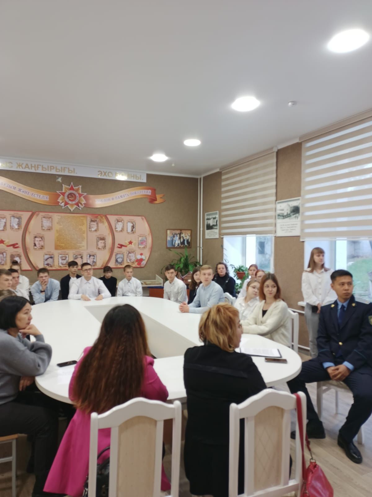 В КГУ ОШ 1 прошла встреча с участием прокурора отдела прокуратуры г.Темиртау Асылбековым А М., психологами поликлиники 1 г.Темиртау Асиловой М.К. и Коптилеуовой Р.К. по профилактике наркомании и таб…