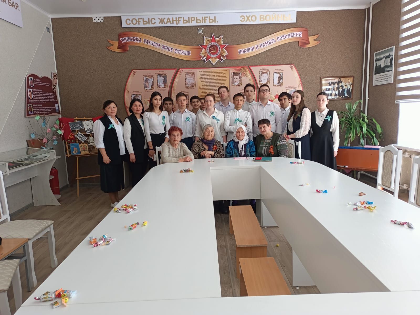 В канун праздника Великой Победы мы пригласили на творческую встречу Абжикееву Кокнаш Жумашевну, Шилину Валентину Васильевну, Журавлеву Нелли Ивановну-тружеников тыла, тех, кто был детьми в те суровые годы, люди, которые на своих плечах вынесли тяготы ст