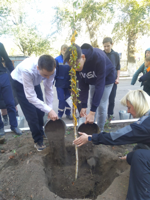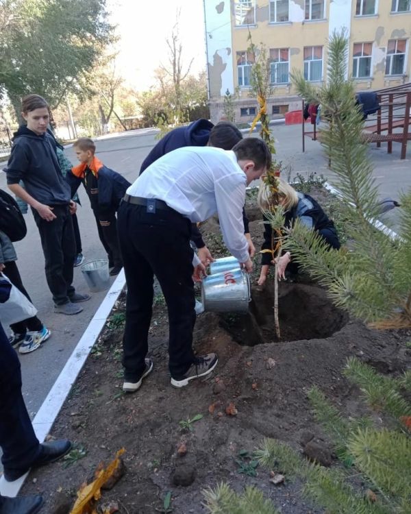 На прилегающей территории школы 7 октября в рамках проведения мероприятия по защите окружающей среды и экологического воспитания детей была организованна совместная посадка древесно-кустарнико…