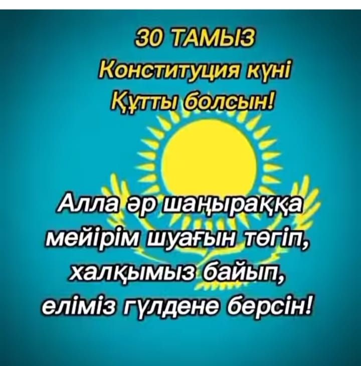 Құрметті ұстаздар, ата- аналар, оқушылар! Сіздерді шын жүректен Конституция күнімен құттықтаймын!