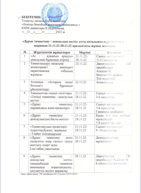 Дұрыс тамақтану-денсаулық негізі атты апталықта жүргізілетін іс шараның жоспары.