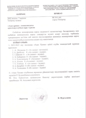 "Әлихан Бөкейхан атындағы гимназиясы"КММ адал ұрпақ еріктілер клубы!
