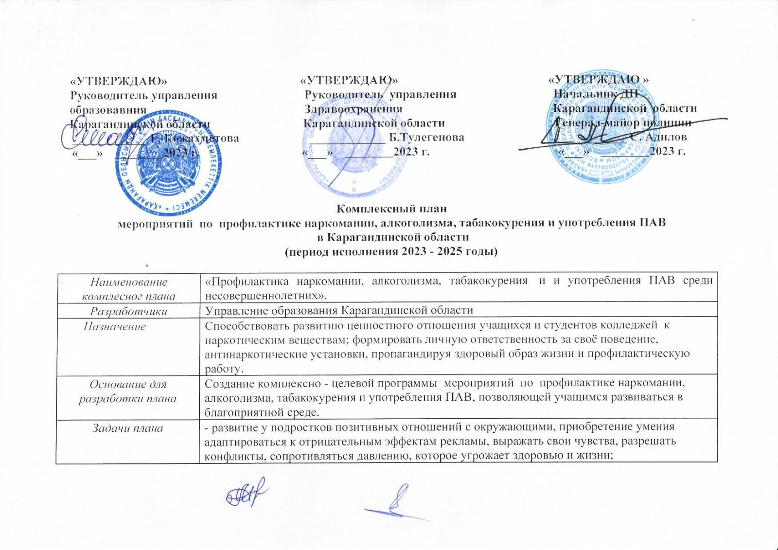 Есірткі, ішімдік пен темекінің алдын алу 2023-2025 кешенді жоспары