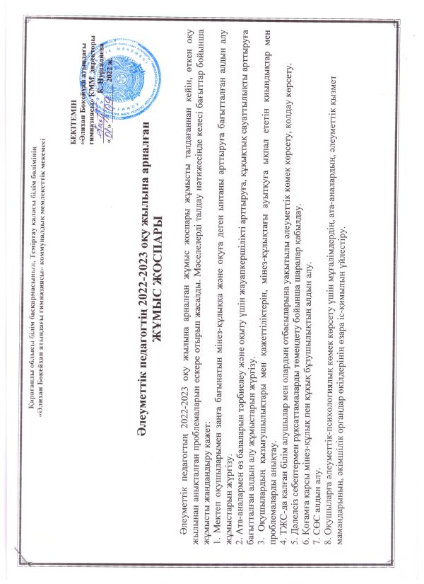 2023-2024 оқу жылына арналған әлеуметтік педагогтың жұмыс жоспары