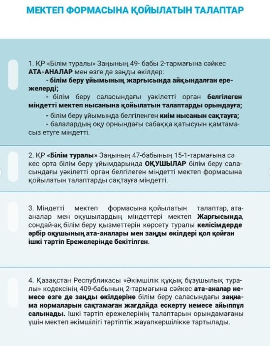 Құрметті гимназия оқушылары, ата-аналары мен ұжым! “ҮЛГЕРІМ - ТӘРТІП - МЕКТЕП ФОРМАСЫ” бойынша ішкі тәртіп қағидаларын сақтайық!