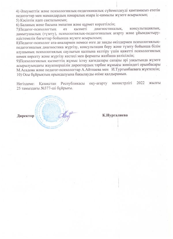 Психологиялық қызметтің жұмыс істеу қағидаларын бекіту мен мамандар құрамына өзгеріс еңгізу!