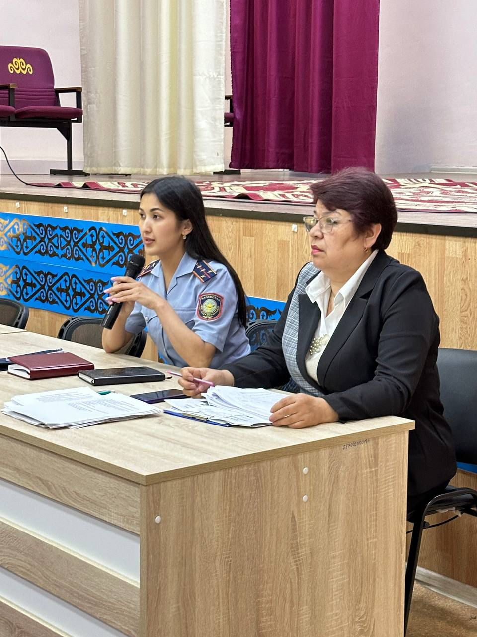 2023-2024 оқу жылының 17 мамыр күні ата-аналар жиналысында гимназия әкімшілігі және Шығыс полиция бөлімінің қызметкерлерімен ақпарат беріп, түсіндіру жұмыстары жүргізілді.