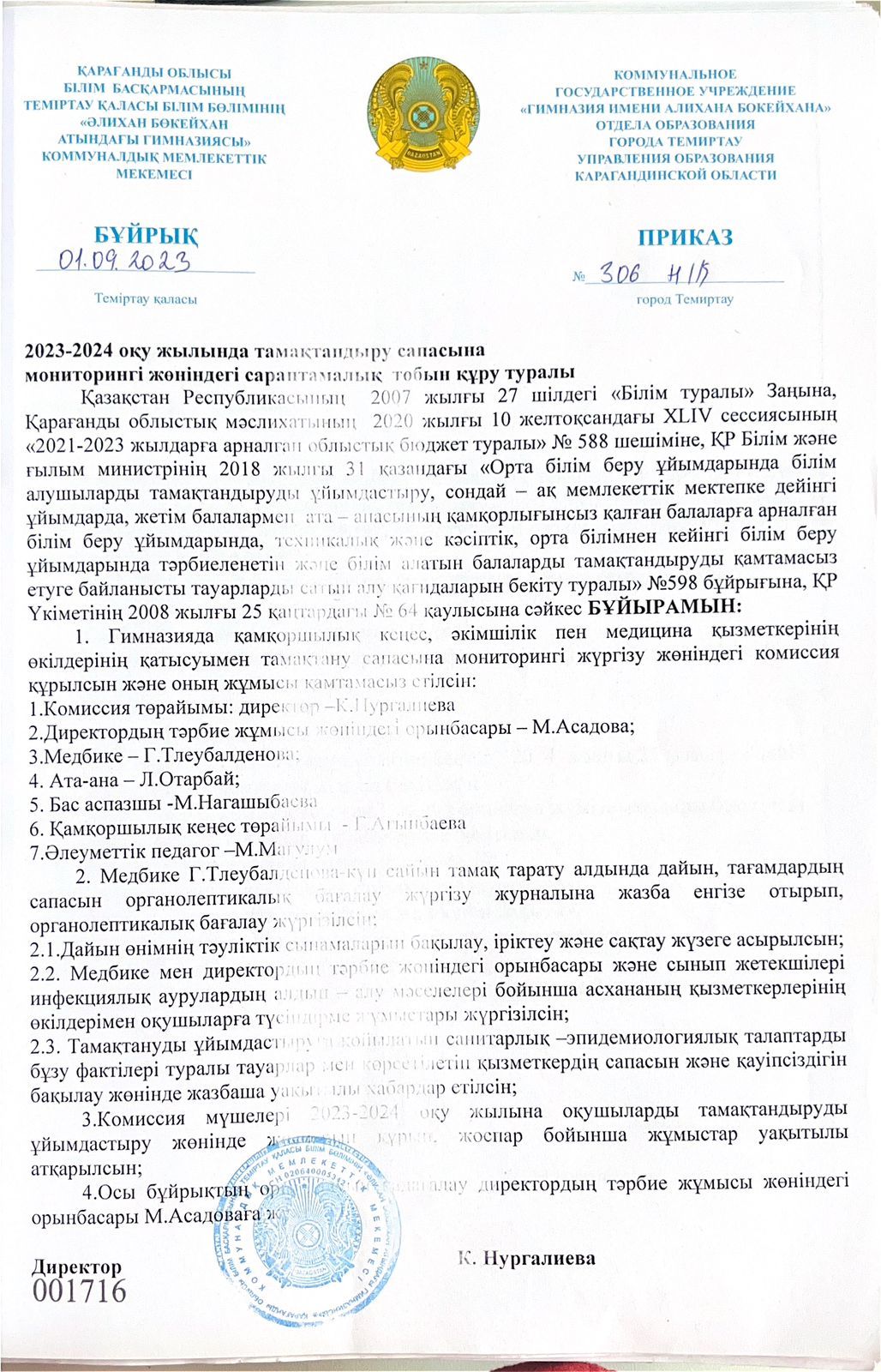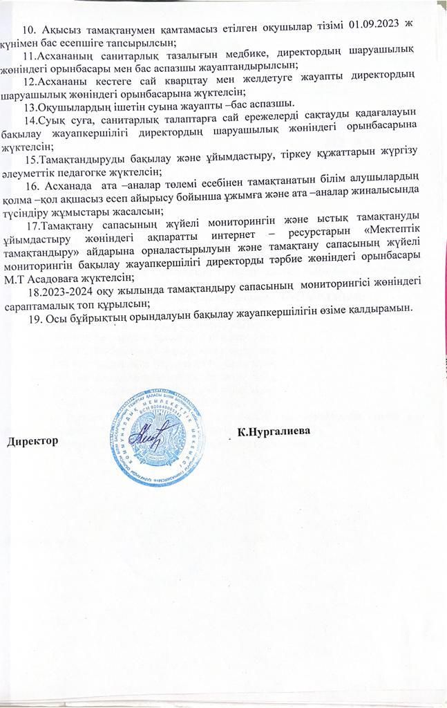 2023-2024 оқу жылындағы тамақтану сапасының мониторингі тобының жұмысы