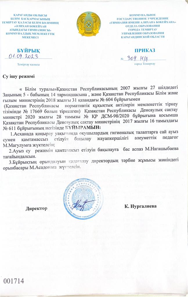 2023-2024 оқу жылындағы су ішу режим.