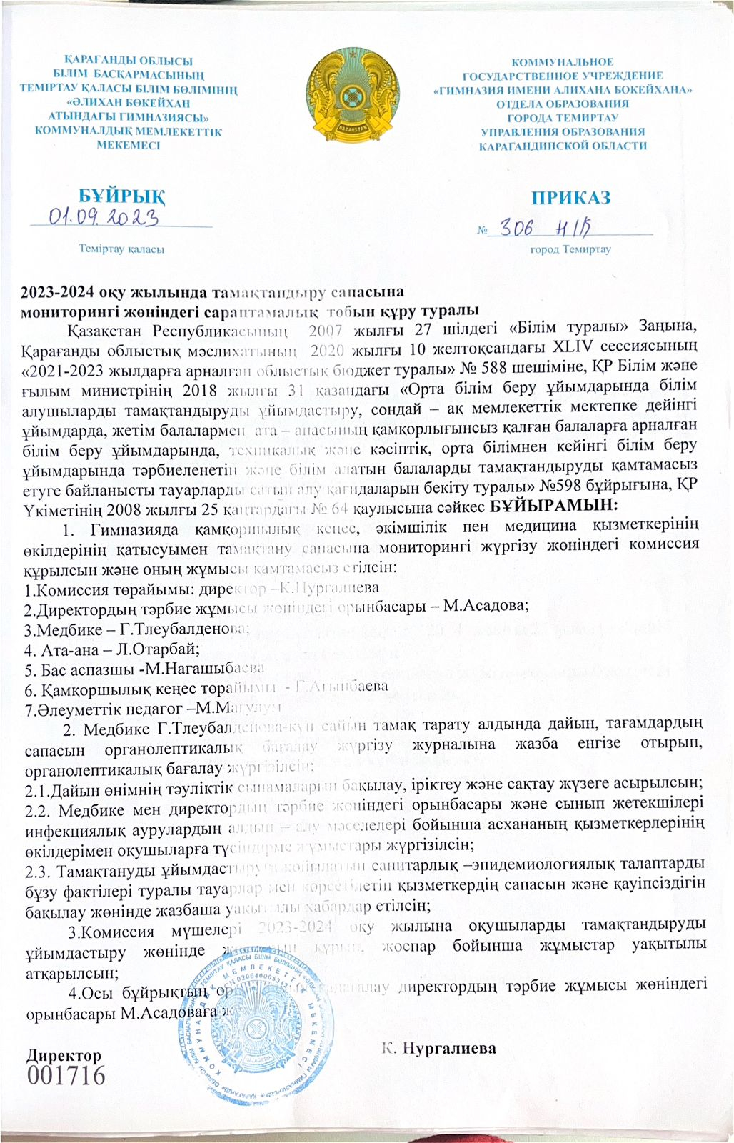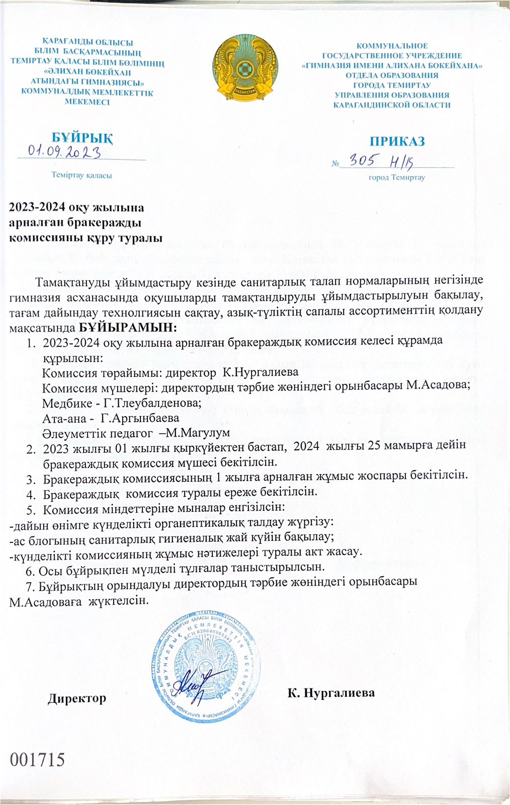 2023-2024 оқу жылындағы бракераждық комиссия құрамы.