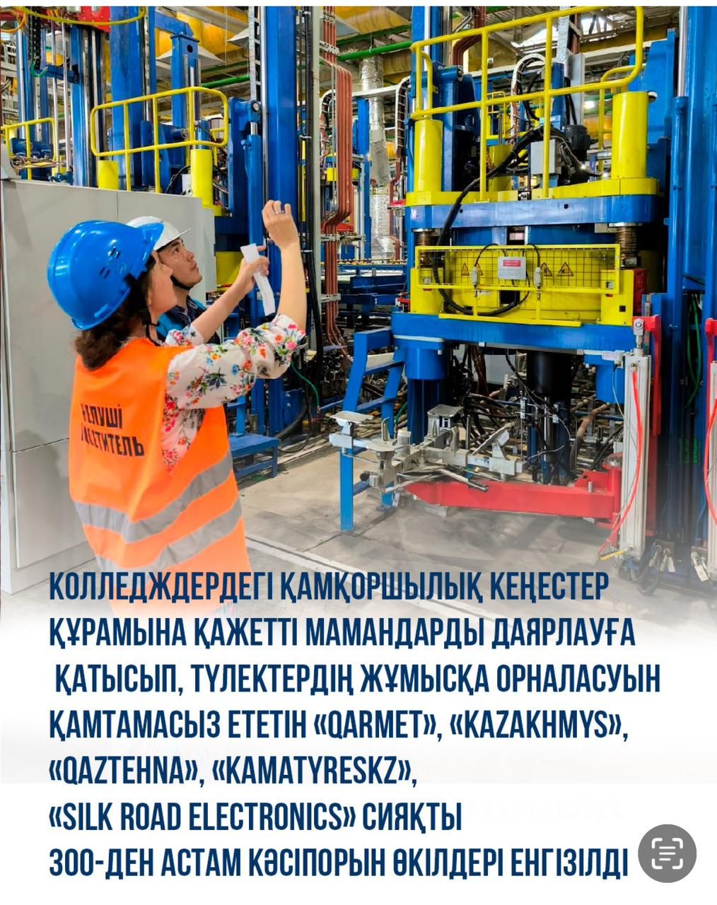 Бүгінде елімізде 772 техникалық және кәсіптік білім беру ұйымы жұмыс істейді, онда 565 мың студент білім алуда, оның 177 мыңы биыл оқуға түсті.