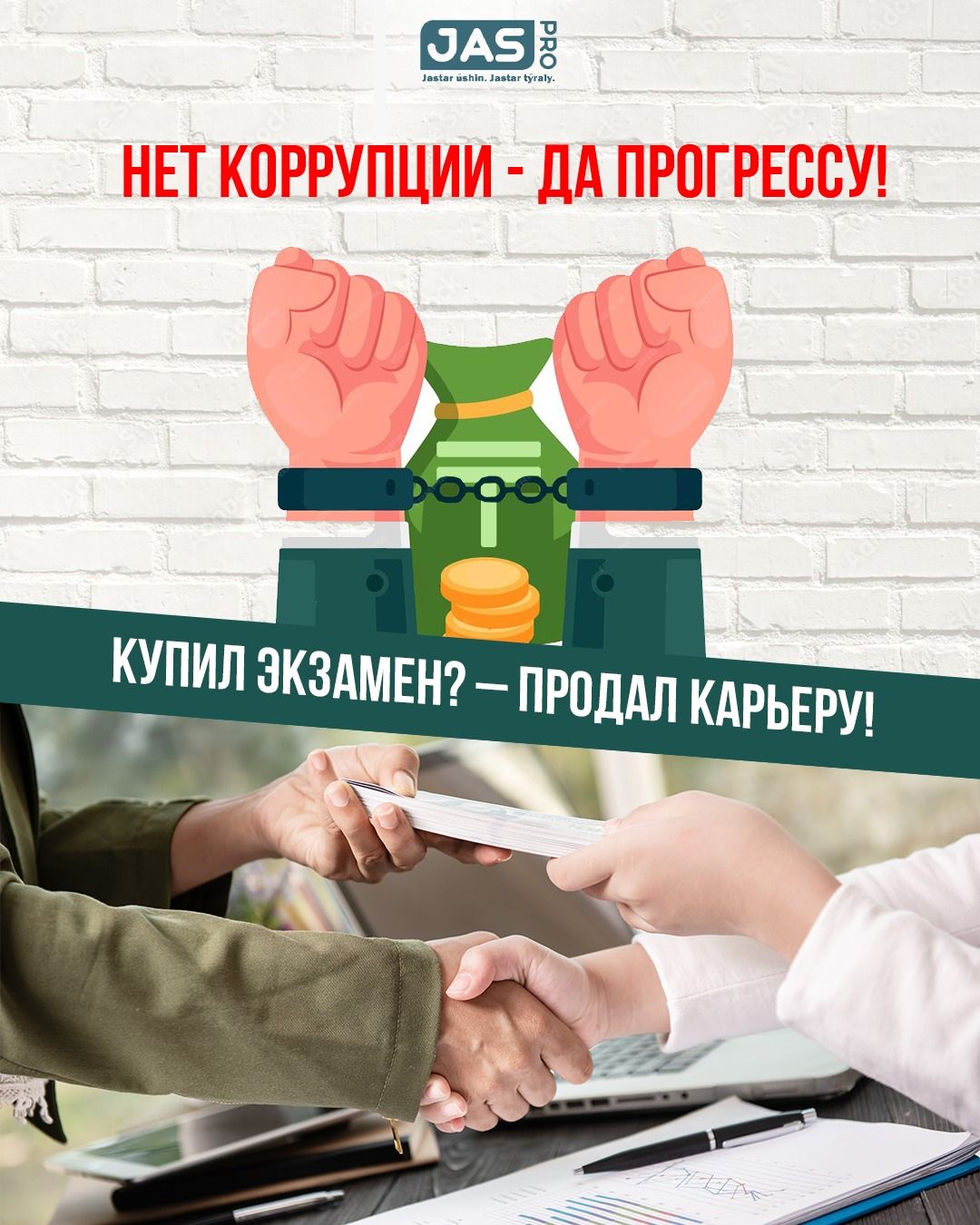 Адал өмір сүр! Өзіңізден бастаңыз! Біз еліміздің болашағымыз, болашағымыз таза, жарқын болуы керек! Жастар жемқорлыққа қарсы! @jasprokrg