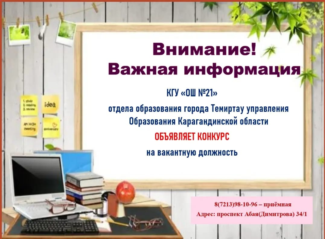 Объявление об избрании нового состава Попечительского совета КГУ "ОШ № 21" на 2023-2026 г.г.