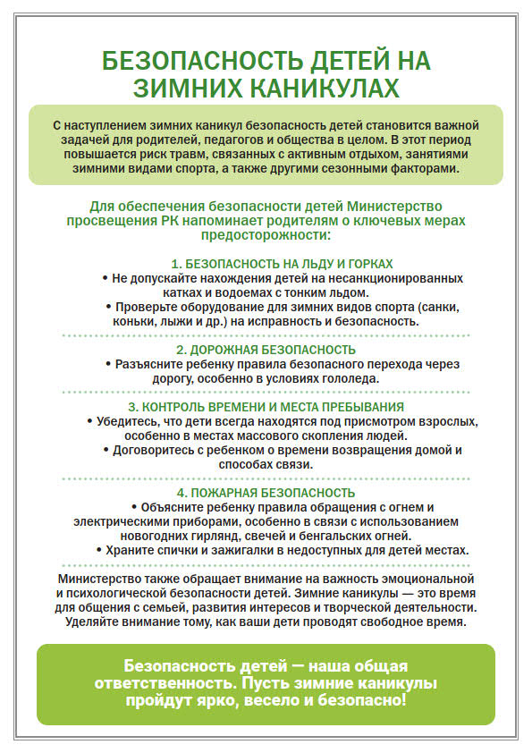 Қысқы демалыс кезіндегі балалардың қауіпсіздігі