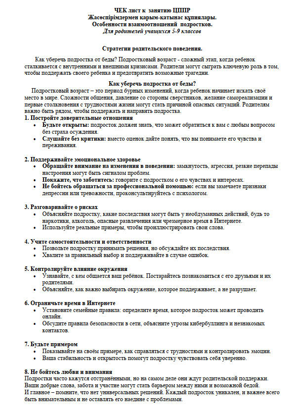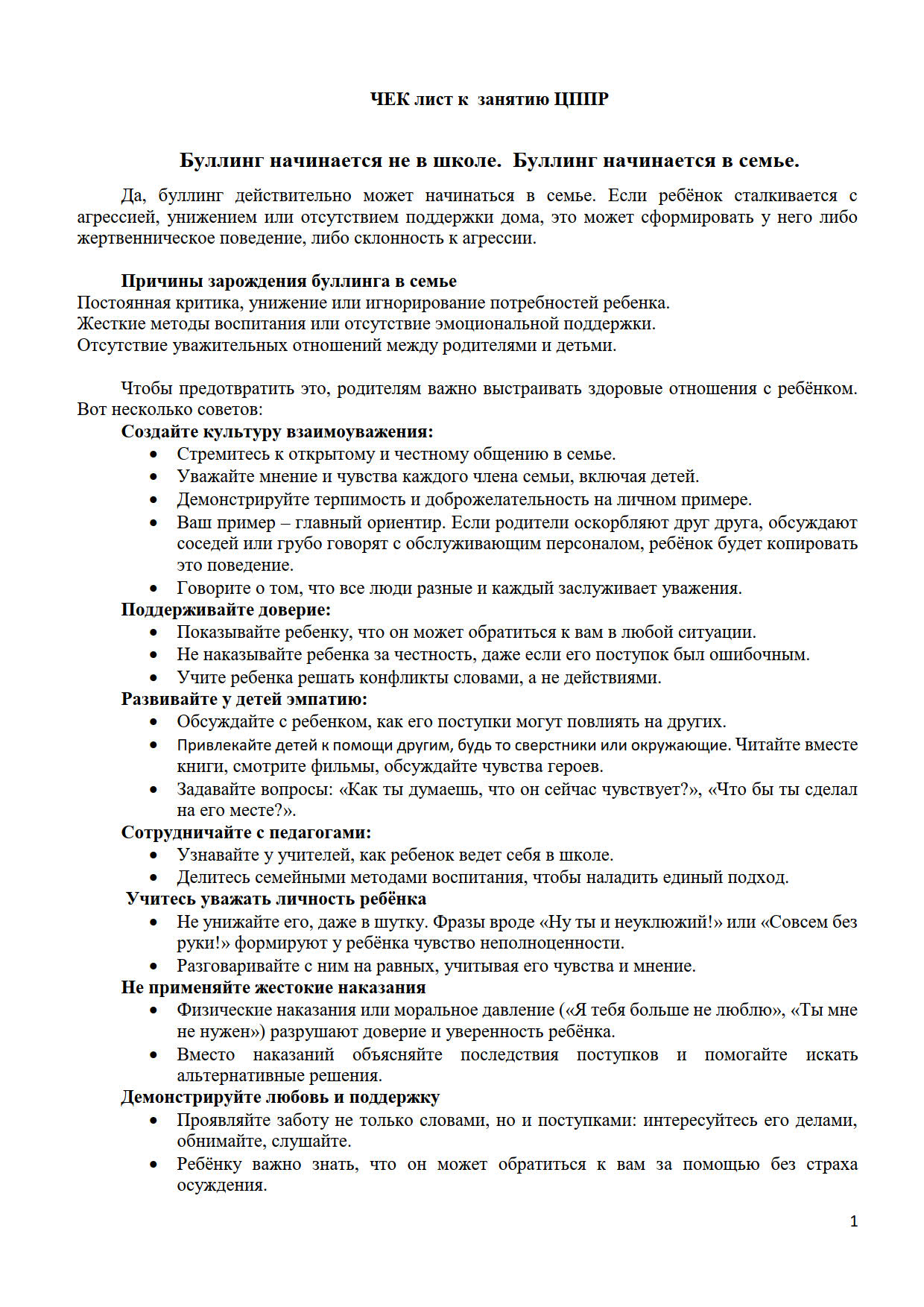 CPPR САБАҚЫН ТЕКСЕРУ ТІЗІМІ Қорқыту мектептен басталмайды. Бұзақылық отбасынан басталады.