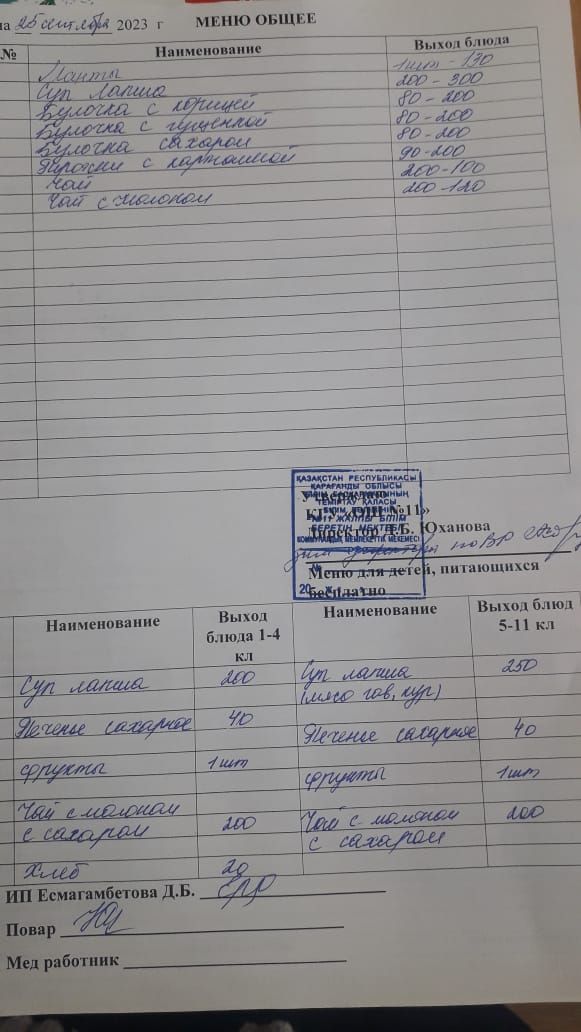Меню на 26 сентября 2023 года