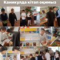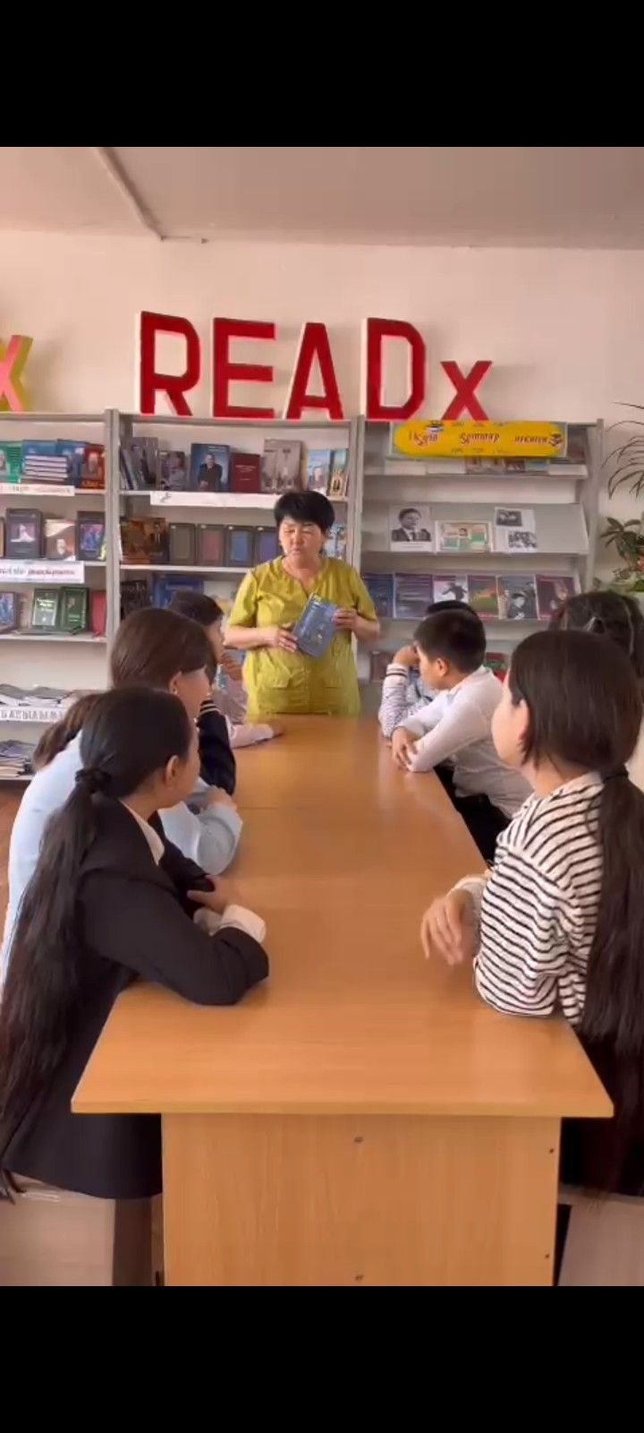 Мектеп кітапханасында ,,Оқуға құштар мектеп " жобасы аясында ,, Менің сүйікті кітабым" республикалық челленджі бойынша С.Мұратбековтың ,Жабайы алма" шығармасын 7-сынып оқушылары…