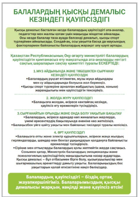 Балалардың қысқы демалыс кезіндегі қауіпсіздігі