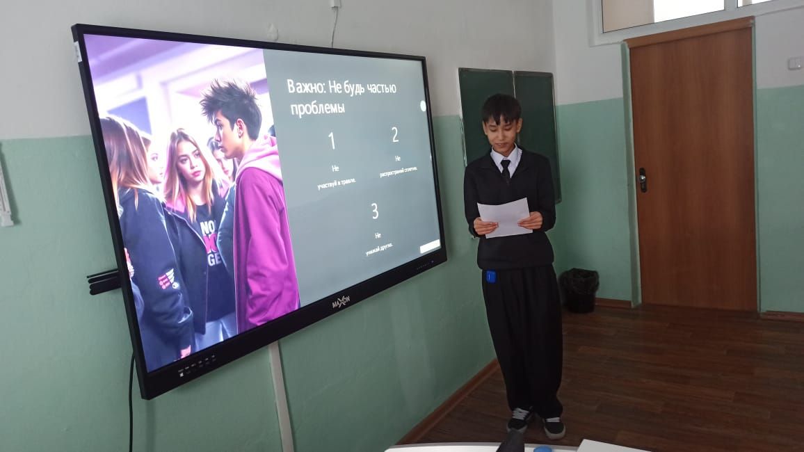 10 ақпанда " Өзіңізді буллингтен қорғаңыз!", ашық талқылау форматында сынып сағаты өтті. Оқушылар буллинг не екенін, оның формалары мен салдарын біліп, қорғаныс пен жауап беру тәсілдерін т…