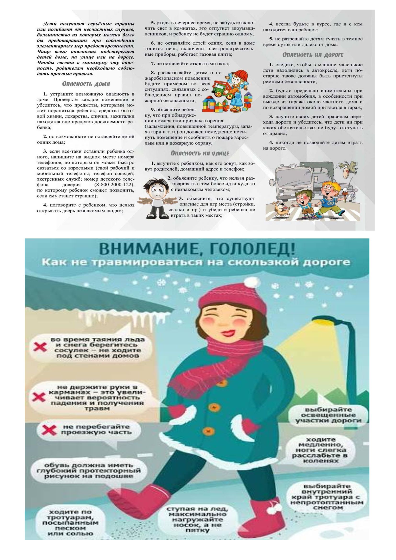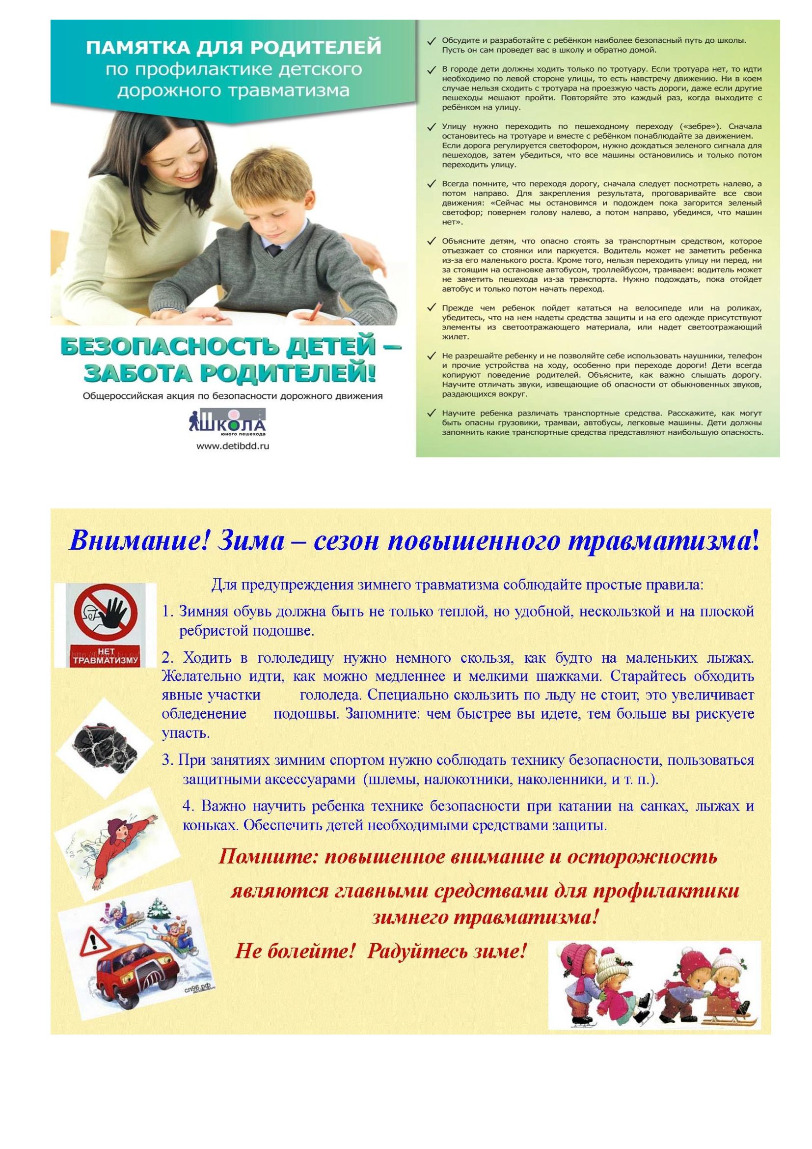 памятка для родителей по профилактике детского травматизма в зимнее время