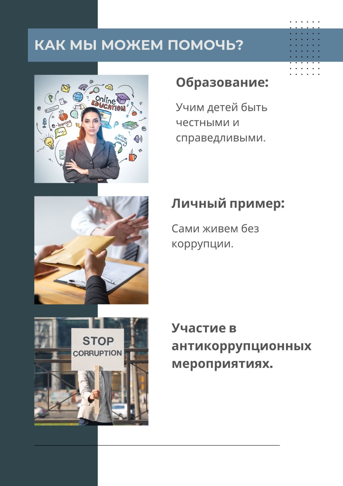 Мектеп ортасында сыбайлас жемқорлыққа қарсы мәдениетті қалыптастыру, сыбайлас жемқорлыққа төзбеушілікті көрсететін құндылықтар жүйесін сақтау және нығайту, оның ішінде мектеп оқушыларында заң талапт…