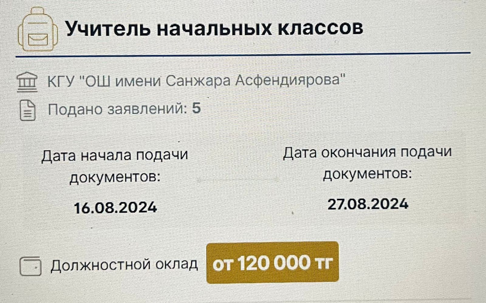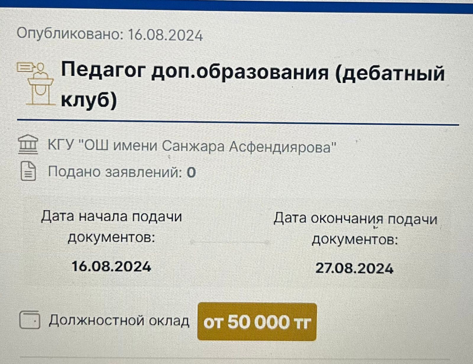 Қарағанды облысы білім басқармасының Шахтинск қаласы білім бөлімінің "С.Асфендияров атындағы жалпы білім беретін мектебі" КММ-нің 2024-2025 оқу жылында қажет ететін бос орындар туралы ақпа…