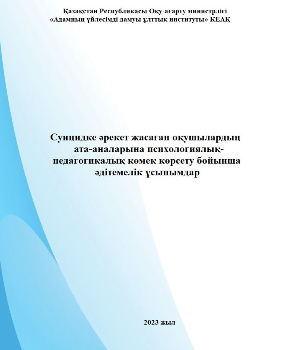 Суицидке әрекет жасаған оқушылардың ата-аналарына психологиялық-педагогикалық көмек көрсету бойынша әдістемелік ұсынымдар