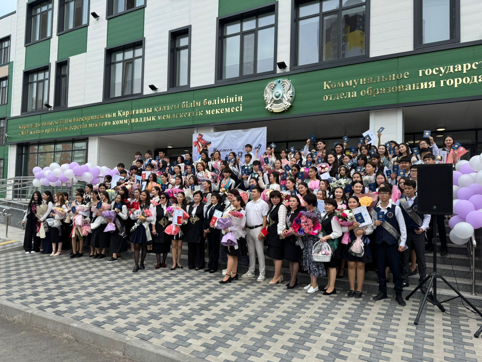 Қарағанды қаласындағы келешек мектептердің бірінде аттестат тапсыру сәттері: салтанатты әрі жылы атмосферада түлектер мектепті аяқтағаны туралы аттестаттарын алды. Ұстаздар, ата-аналар мен түлектерд…
