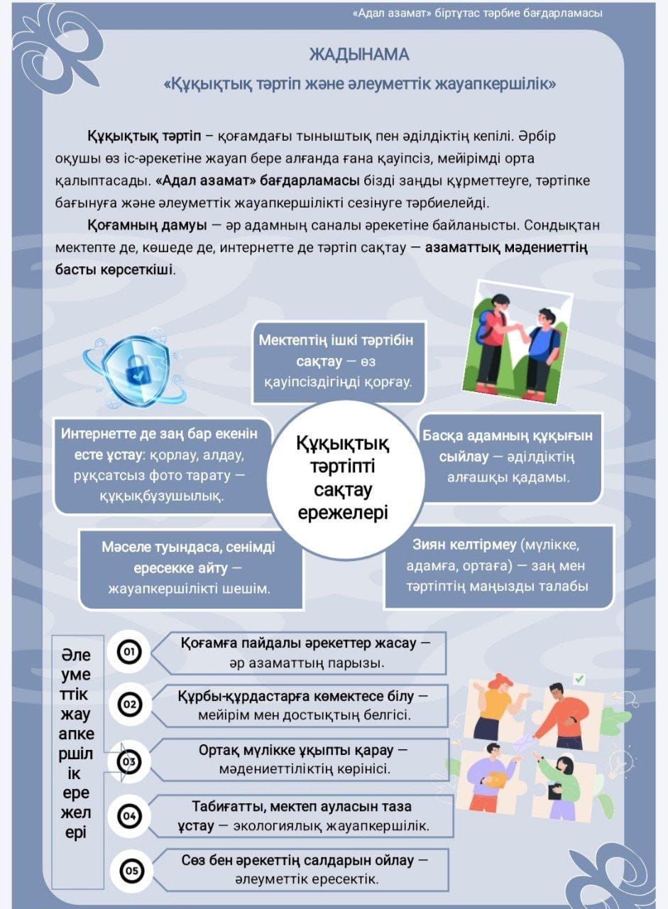Құқықтық мәдениетті тәрбиелеу және салауатты өмір салтын қалыптастыру мақсатында «Заң және тәртіп» айлығы мен «Құқықтық навигатор» құқықтық апталығы аясында 7-сынып оқушылары…