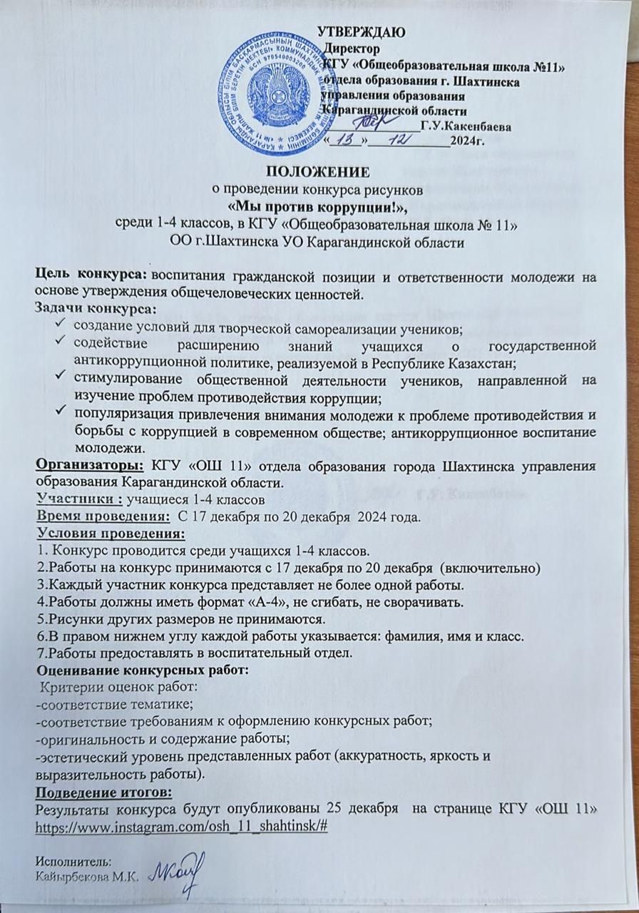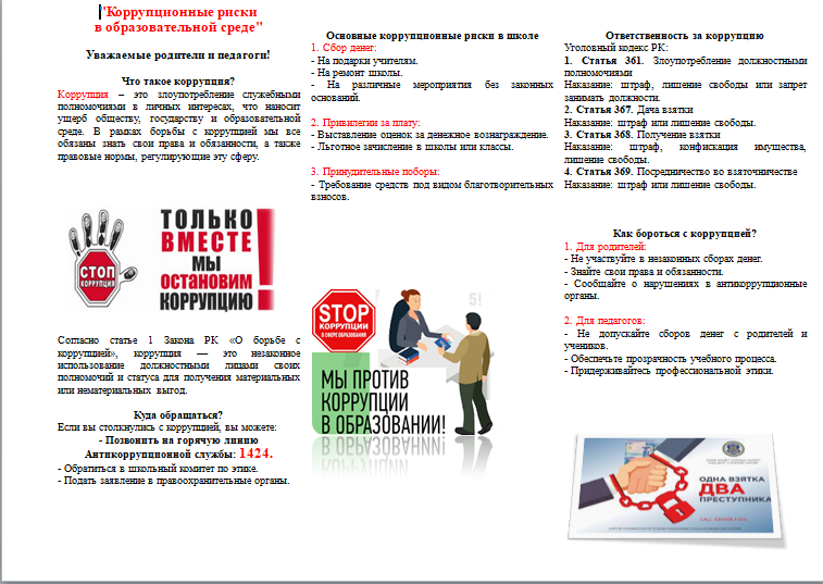 Сыбайлас жемқорлықтың алдын алу бойынша іс-шаралар шеңберінде Шахтинск қ.ҚБ "№ 11 ЖББМ" КММ ҚБ ББ 3-6 желтоқсан аралығында ата-аналар комитетінің өкілдерімен кездесулер ұйымдастырылды. Әңг…