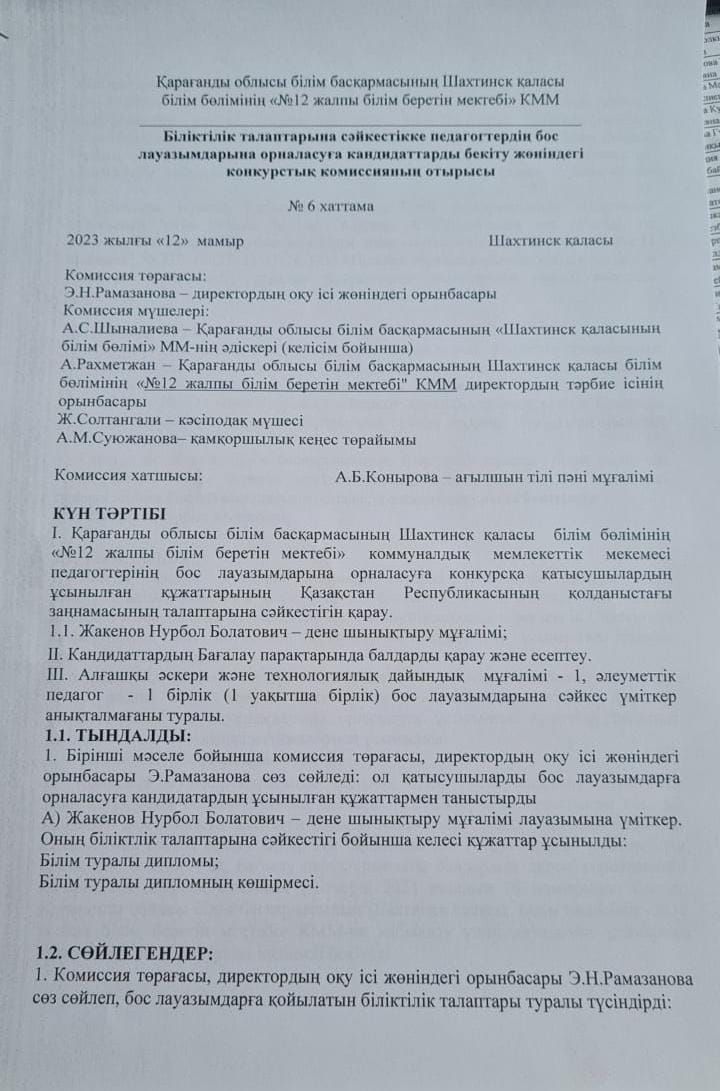бос лауазымына орналасуға конкурс туралы