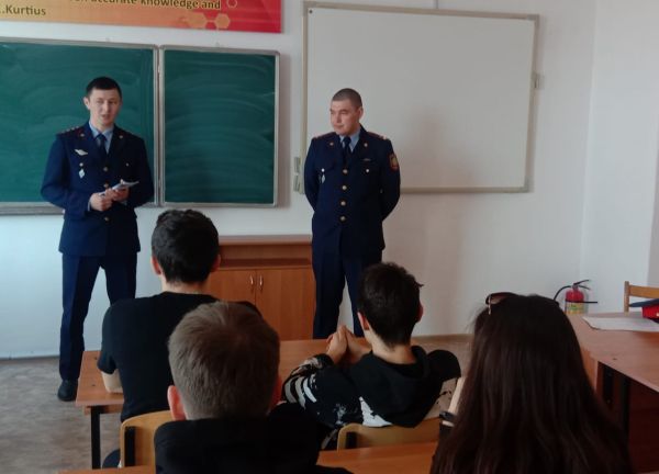 В рамках профориентационной работы в КГУ «Школа-лицей№14» состоялась встреча с представителями РГУ « Учреждение АК159/9» капитаном юстиции Төлеуовым Нұрбеко…