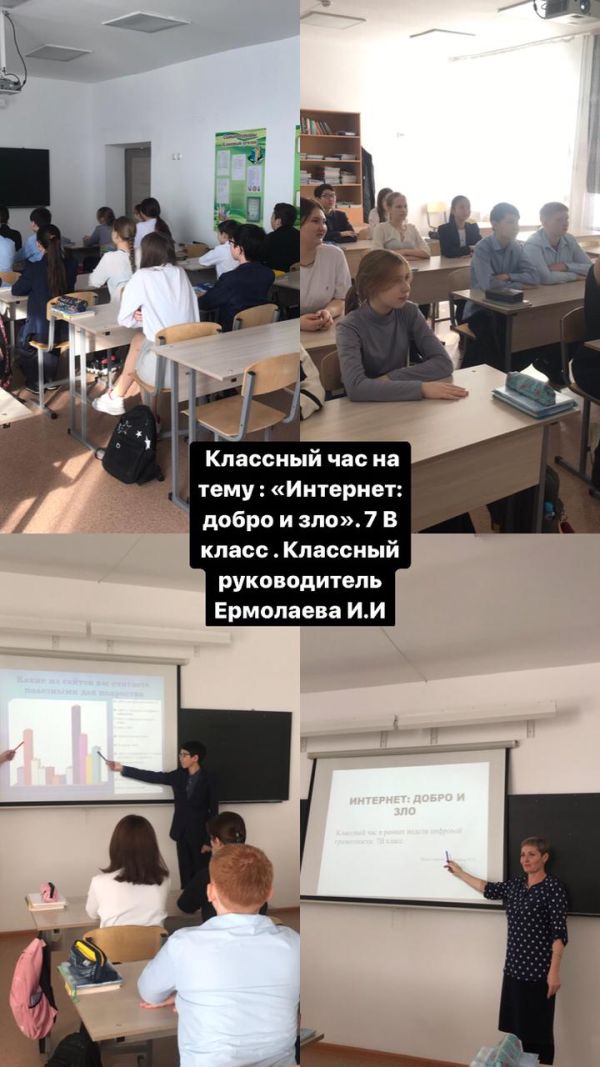 07 Ақпан 2023 жыл "Қ.Аманжолов атындағы жалпы білім беретін мектебі" "Цифрлық әлем" ақпараттық сауаттылық апталығы аясында и. И. Ермолаева, 7 "В" сыныбының сынып жетекш…