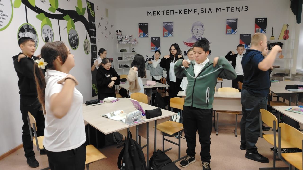 «Саламатты Мектеп» жобасы аясында әр сейсенбі күні КММ «Қасым Аманжолов атындағы ОЖБМ»-де 1–11 сынып оқушылары арасында таңғы жаттығ…