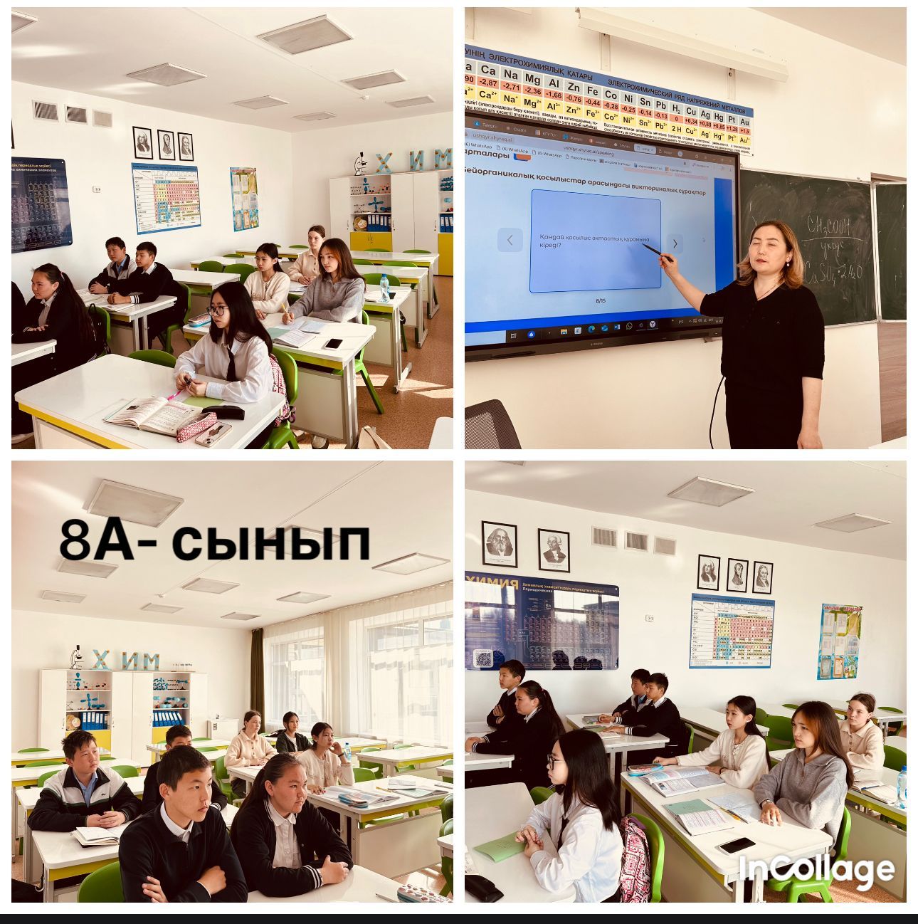 2025 жылғы 16 сәуір «Қ. Аманжолов атындағы ЖББМ» КММ-де экологиялық сауаттылық апталығы аясында химия пәнінің мұғалімі Хибадат М. 8А сынып оқушыларына «Бейорганикалық қосылыстар&ra…