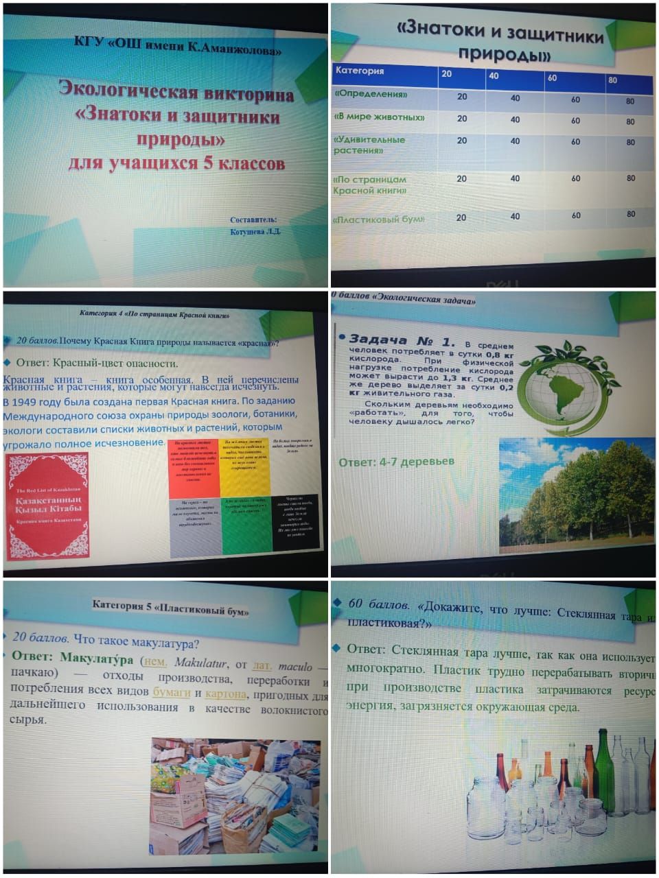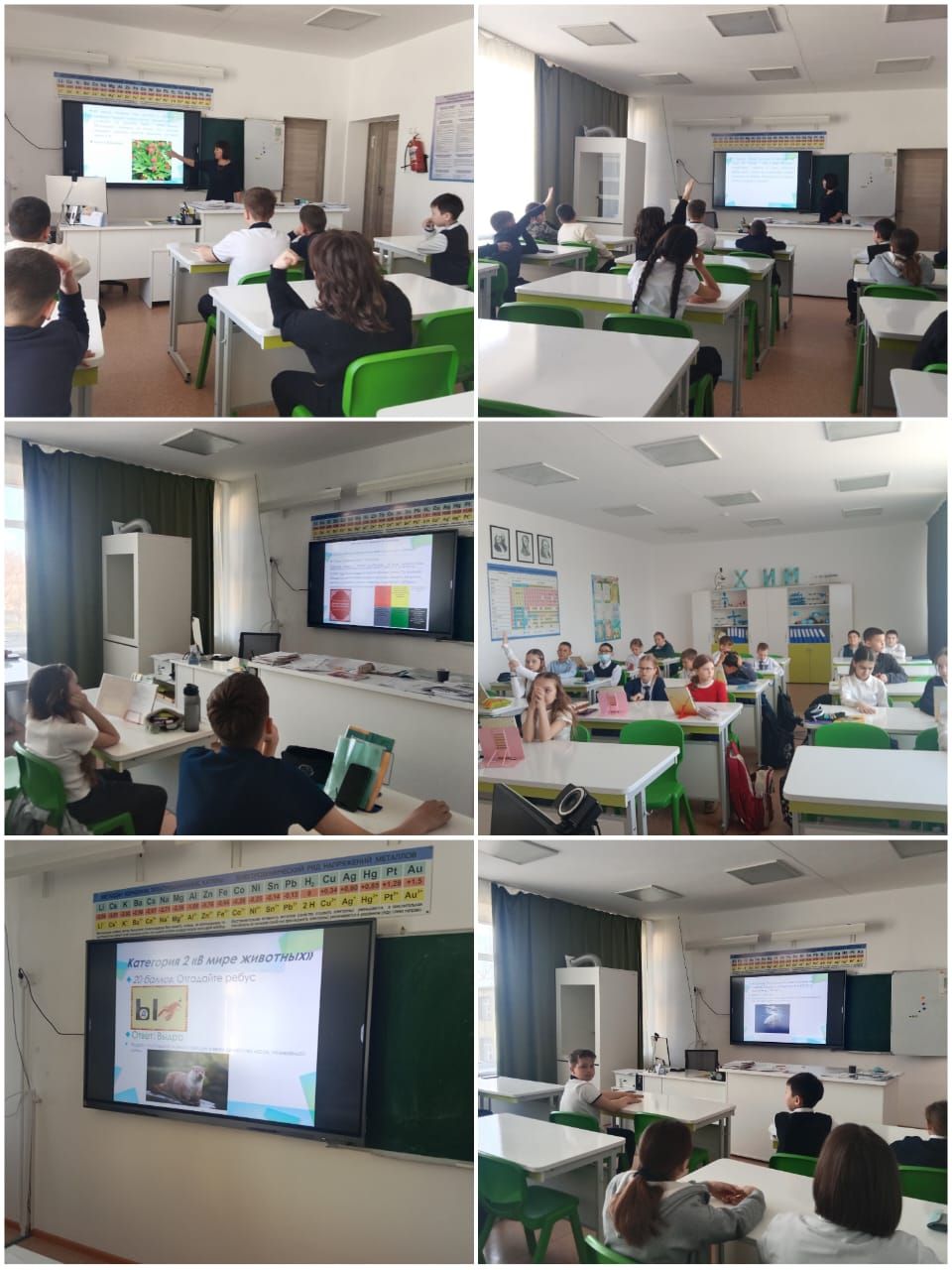 2025 жылдың 17 сәуірде «К.Аманжолов атындағы ЖББМ» КММ «Жасыл Қазақстан» экологиялық сауаттылық апталығы аясында биология пәнінің мұғалімі Қотушева Л.Д. 5-сынып оқушыларына а…